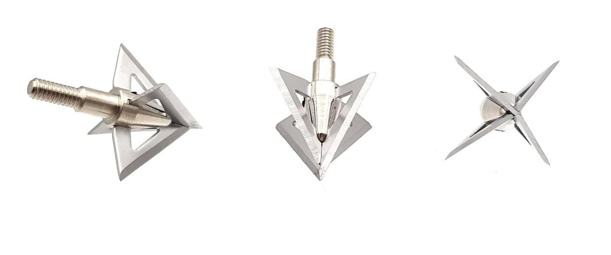Четырехлезвенные компактные наконечники без битка. Проникающий эффект достигается благодаря двум широким лезвиям располагающимся крестообразно, причем более широкое из них выступает сильнее. Подобная конструкция исключает серьезную деформацию наконечника и положительно сказывается на точности стрельбы.