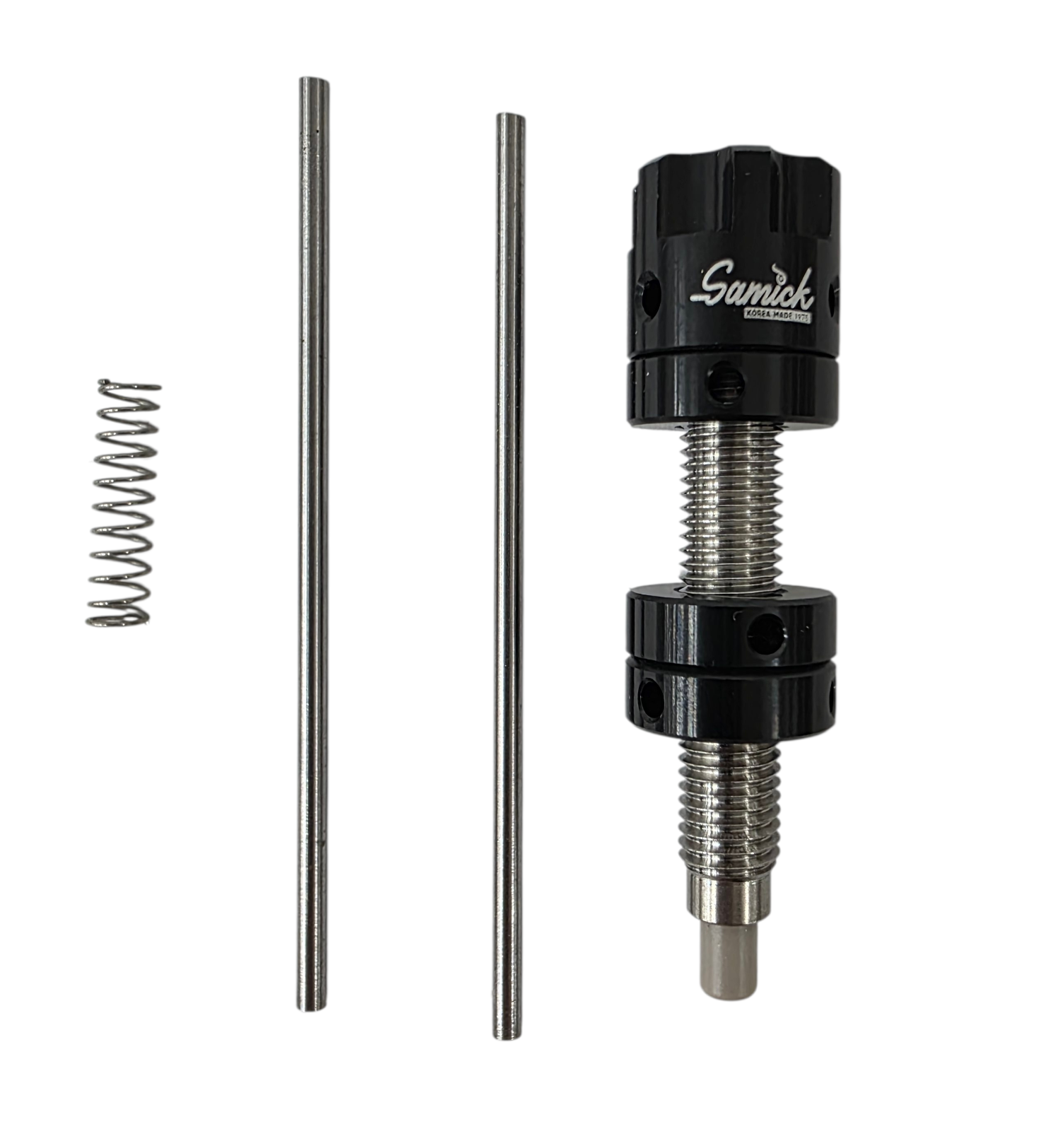 Механизм регулировки: friction‑fit (посадка с трением) — позволяет настраивать жёсткость пружины и глубину плунжера без фиксирующих винтов.